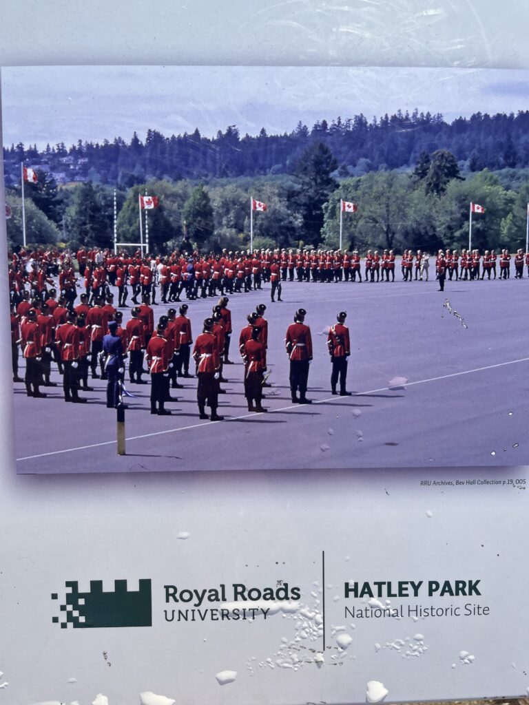 Upon walking around RRU I discovered on a plaque by the lower level of the university grounds that the now lower parking lot used to be a ceremonial marching parade square. Attached below is a picture of the marching square: